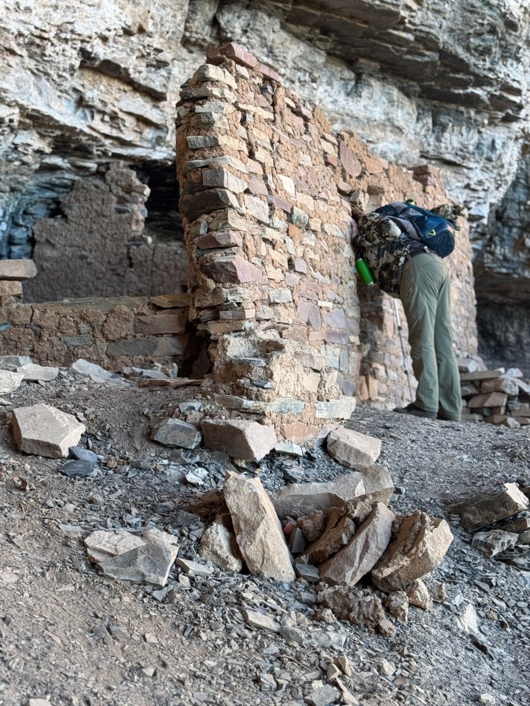 We started our travels on December 20th with the Adventure Seeker travel home from Weston, Idaho. The weather was exceptional for December and had no issues at all. We traveled until our butts where flat in the seats of truck and decided to stop in Flagstaff at Black Barts Rv park and restaurant. It was an interesting stop at the restaurant. A gem in the rough indeed. They had live music from all the waitstaff and we had some of the best smoked Prime Rib that we have ever had. The Chef even visited our table with a greeting and smile, asking how the meal was. Exceptional, we replied. Maybe because we had been traveling, or maybe it was truly the best. The next morning we arose before the sun as the traffic next to the rv park was something we are not accustomed to. On the road again to head to the Achas. We camped where we camped the year before, although the spot was further than probably most would take a toy hauler of 40′. We set up camp, decorated a Christmas cactus and took a short drive before we went back to camp to settle. The next day was gonna be a long and grueling one. The night was way more peaceful then the one before. Up the next morning early, drove over 18 miles in the Xpedition to the trail head. The onX Backcountry says it’s only 3 miles in and out but I started the Garmin and it begged to differ. I walked 9.11 miles from rig back to rig and approx 3500 ft elevation change according to my Garmin. We placed 2 replica figurines in the dwellings, which are the prize at the end of the trail. There will be no GPS coordinates, the pueblos is the locations. Look around if you read this first. They are not hard to find.