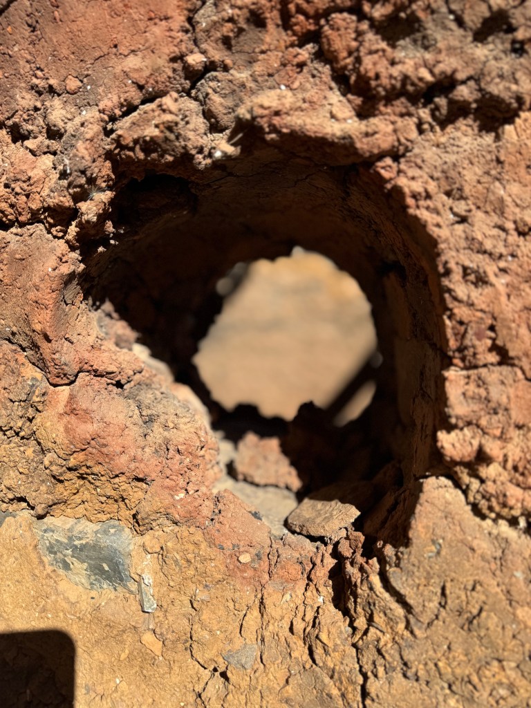 The next morning we traveled to Young, Arizona over the Sierra Ancha. There was a documented clay source we wanted to get. Our first stop was at Buddi’s gas station where the lady there was very nice and informative after living there for 35 years. There is a museum but found it is by appt only. We collected 2 – 5 gallon buckets worth of brown clay, then back to town to eat lunch at the Hitching post where the menu is one item, the daily special. Each day is different but no options you eat what they have for the day. Young is a cute little sleepy town where the school houses k-12 in one building with only an office and library to separate the years. Also, the only way into and out of Young, aka Pleasant Valley is by dirt roads. This was a highlight for sure. I could only imagine living there and would find it quite nice.