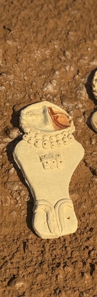 Since this was a special visit, we wanted to leave a little surprise behind. Our 11 year-old granddaughter, Lena had been busy shaping clay, and she made the sweetest Fremont figurine replica ever. We were shocked how well she did on her first one with little instructions, which she made 2 different ones in one weekend. She was equally proud of her work, therefore we decided it deserved a home in the desert, with a little gold tag that says it’s not ancient.