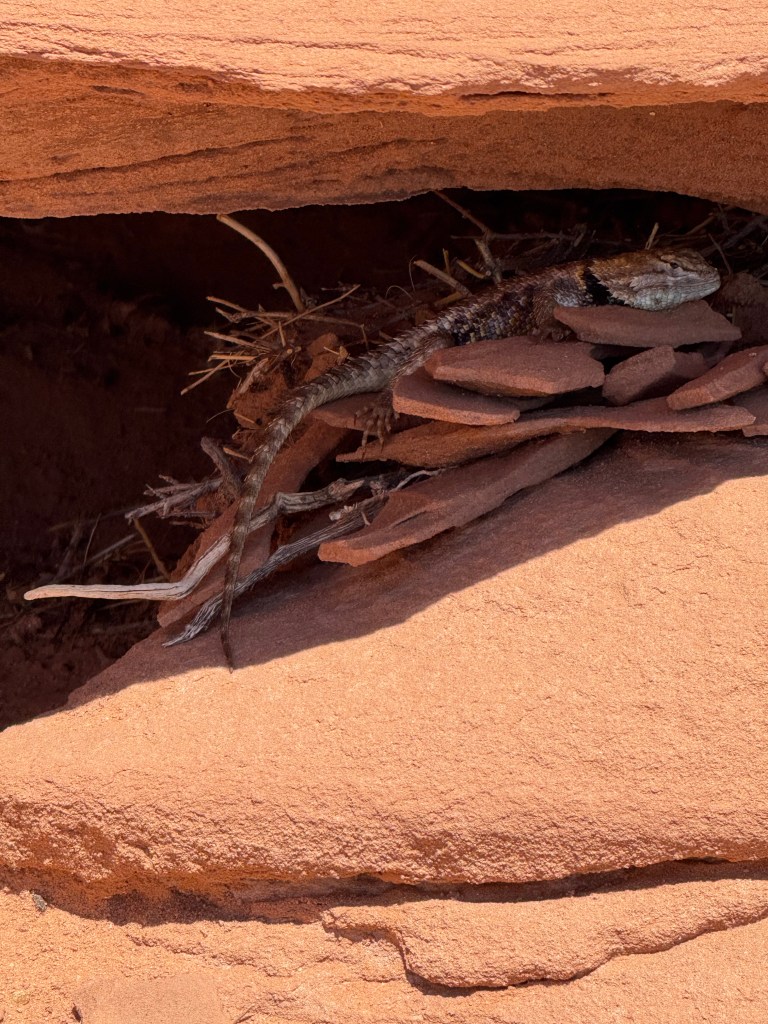 We tucked it in a spot that’s easy to find—right off a busy dirt road intersection. The area is a four-corners kind of crossroad, with trails branching out toward so many incredible sights. If you’re out there exploring, keep your eyes open. You just might come across a small piece of history reimagined by little hands.