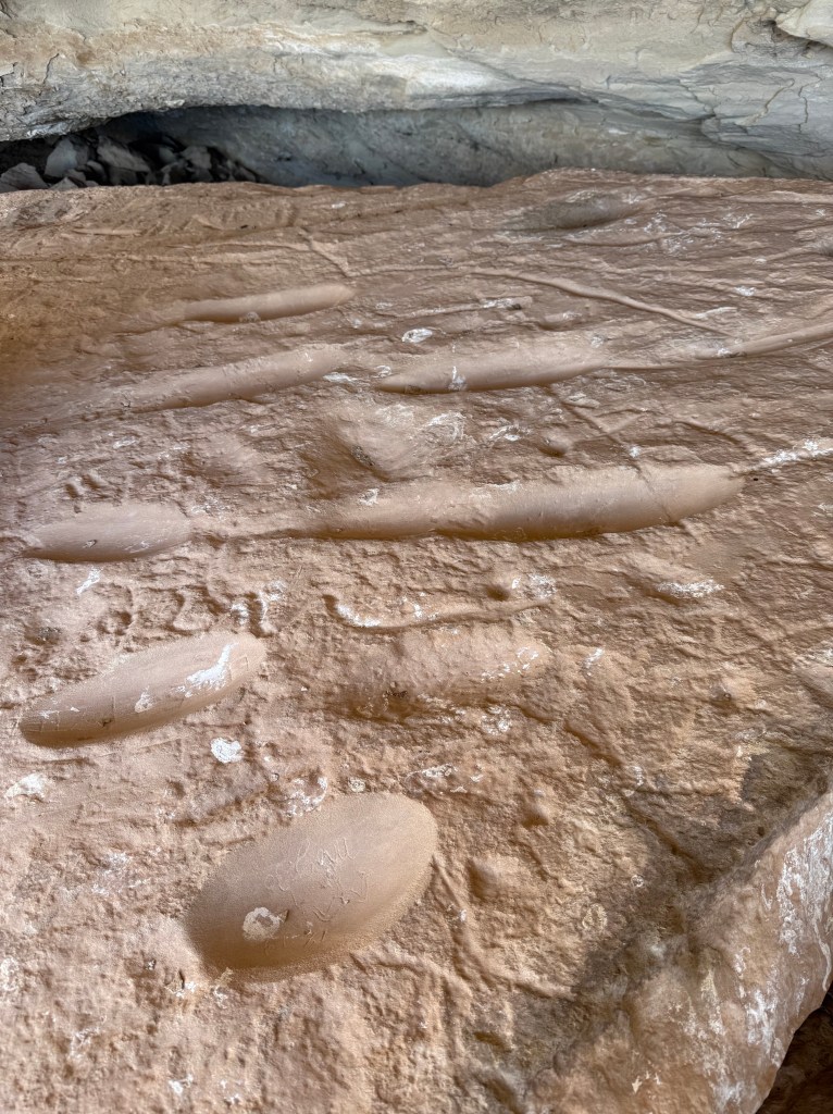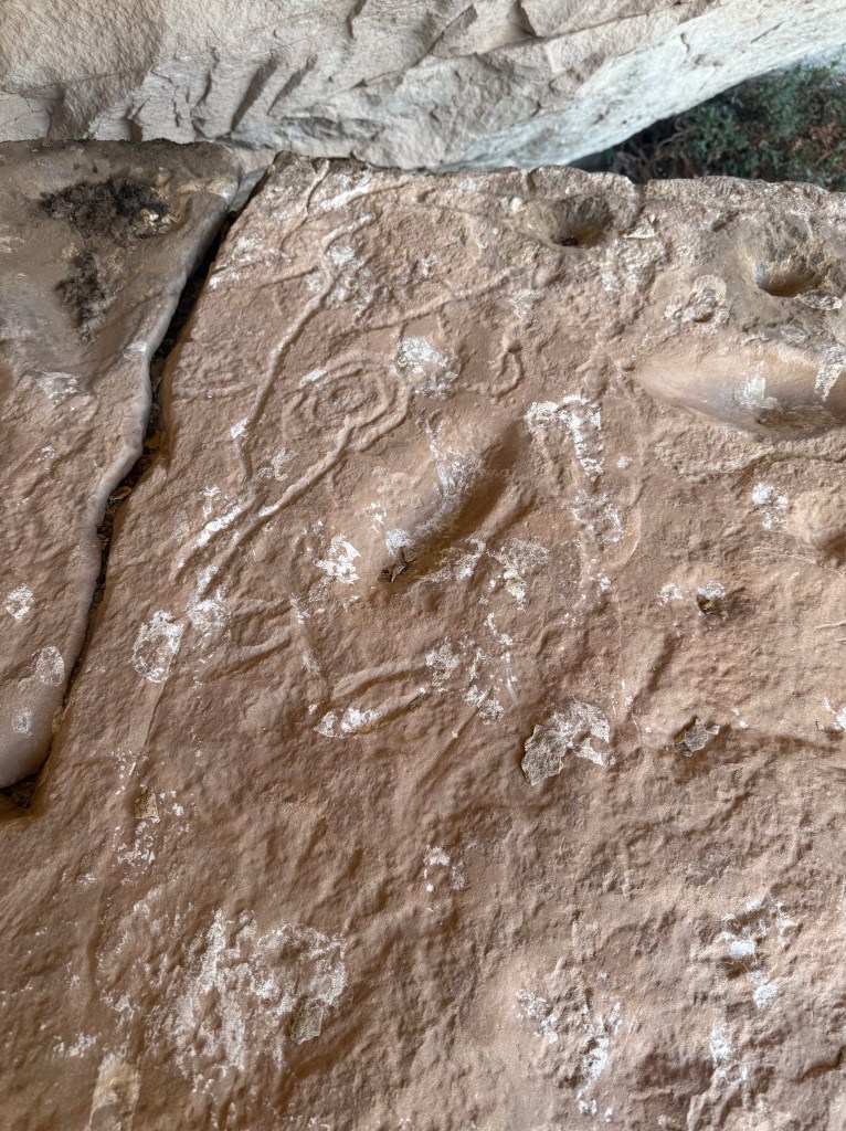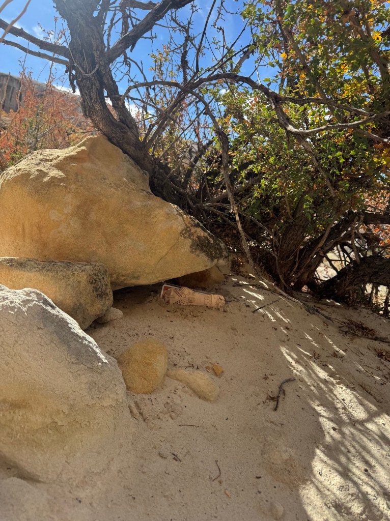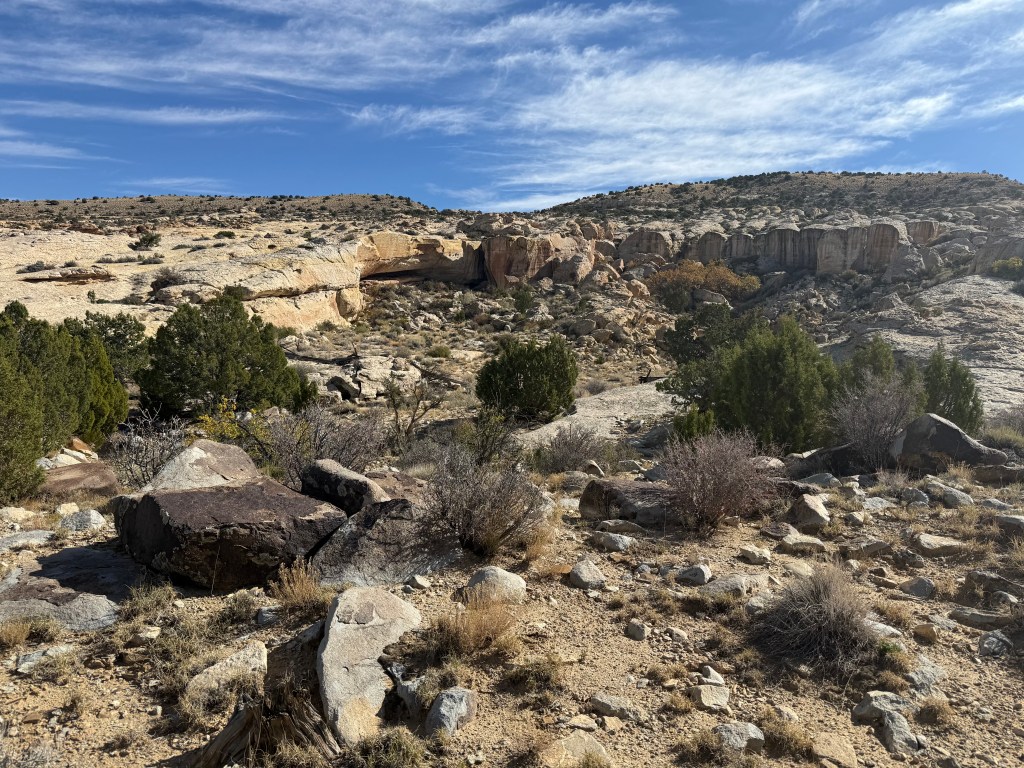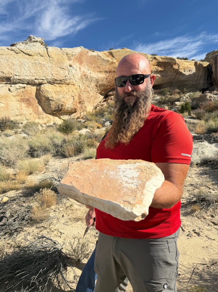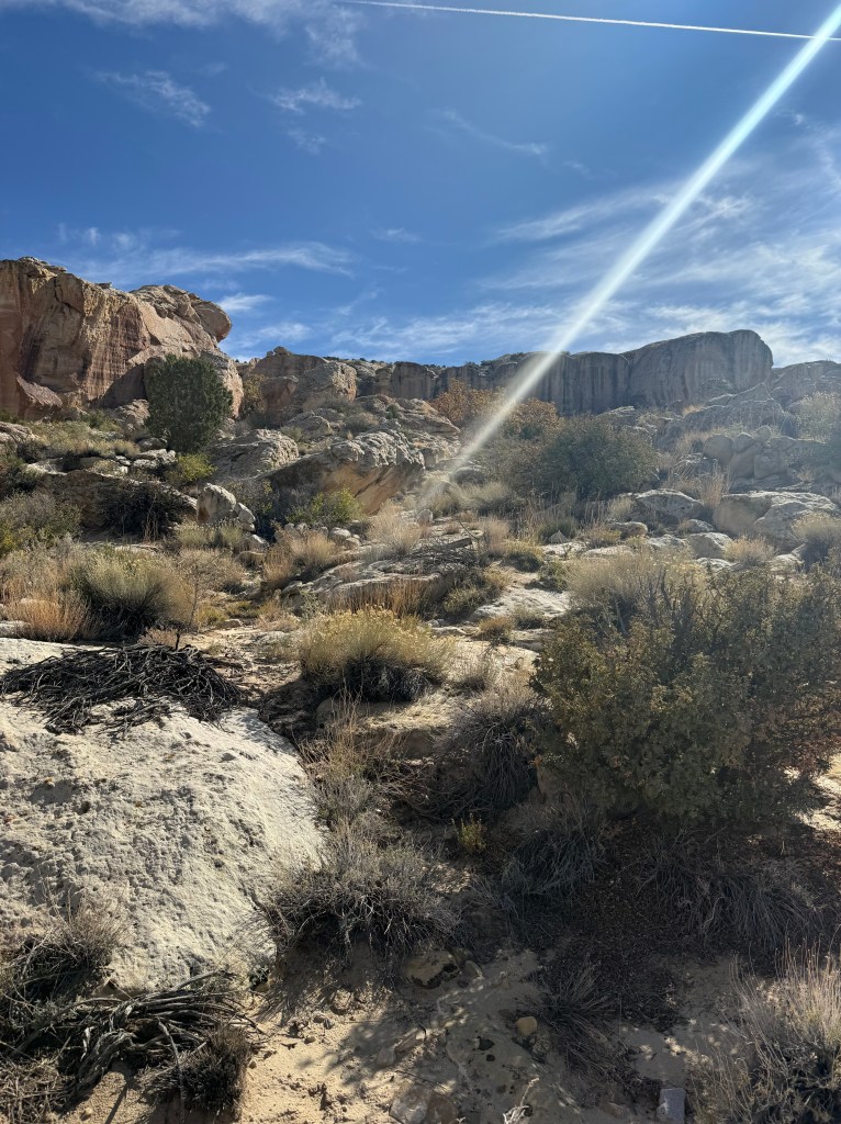 We wanted to show them what we enjoy doing here so we took them to a sandstone alcove covered in ancient art—petroglyphs, pictographs, and rock slabs ground smooth from centuries of use, like metates frozen in time. Standing there, it’s hard not to feel connected to the hands and hearts that came before us, shaping stories into stone under the same desert sun.